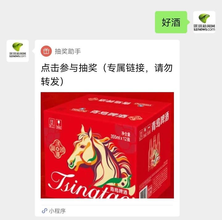 即有机会免费获得青岛啤酒1箱