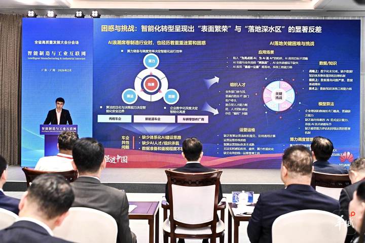 作为中国制造业大省,广东正以前所未有的力度,推动智能制造与工业互联网深度融合,为高质量发展注入强劲动能。2月24日,在2026年广东省高质量发展大会智能制造与工业互联网分会场上,政企学研代表齐聚一堂,一幅以新质生产力驱动的新型工业化图景正在南粤大地徐徐展开。