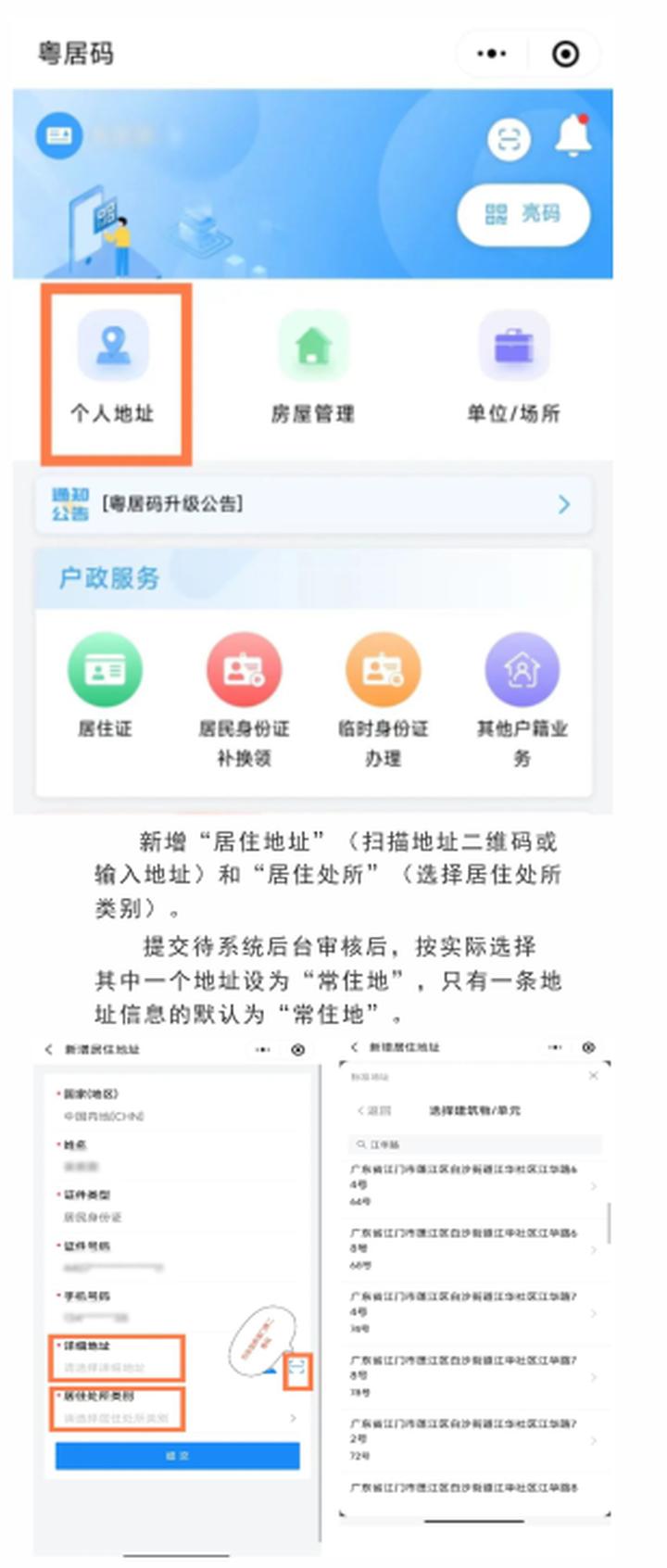 完成申报,经后台审批通过后,系统将显示采集的相关居住地址(可能一人有多条居住地址),请按实际选择其中一条设置为【设为常住地】。
