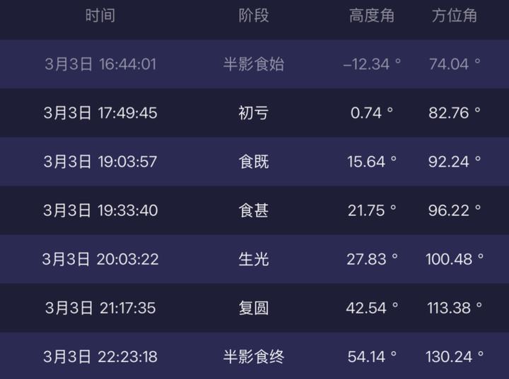 以下为月全食关键时间节点,其中19:33时月亮最暗,红月状态达到顶峰,是最佳观测时刻。