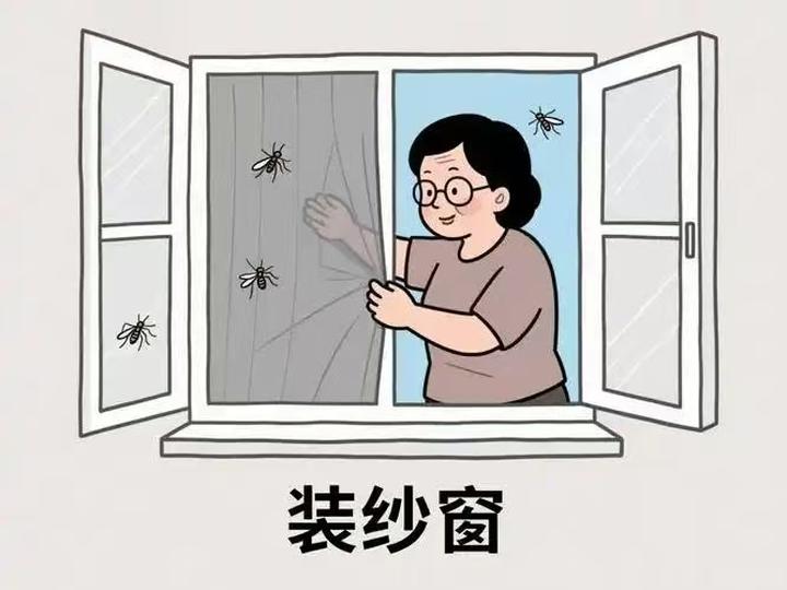 ?门窗:安装纱门、纱窗,破损处及时修补;傍晚和清晨(伊蚊活跃阶段)尽量关闭门窗,或使用纱窗通风。