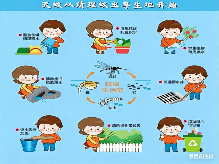 ?重点排查房屋前后、花园、阳台、天台、水池、树洞、绿化带等地,及时清理废弃容器、水养植物的容器、轮胎、杂物、塑料垃圾、竹筒等积水。