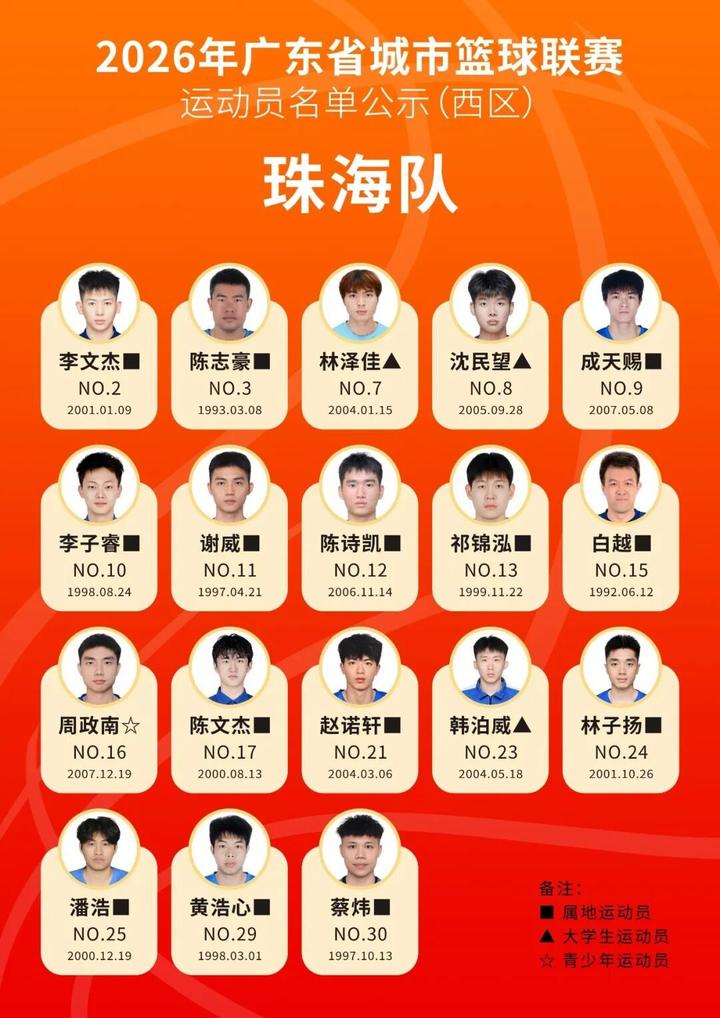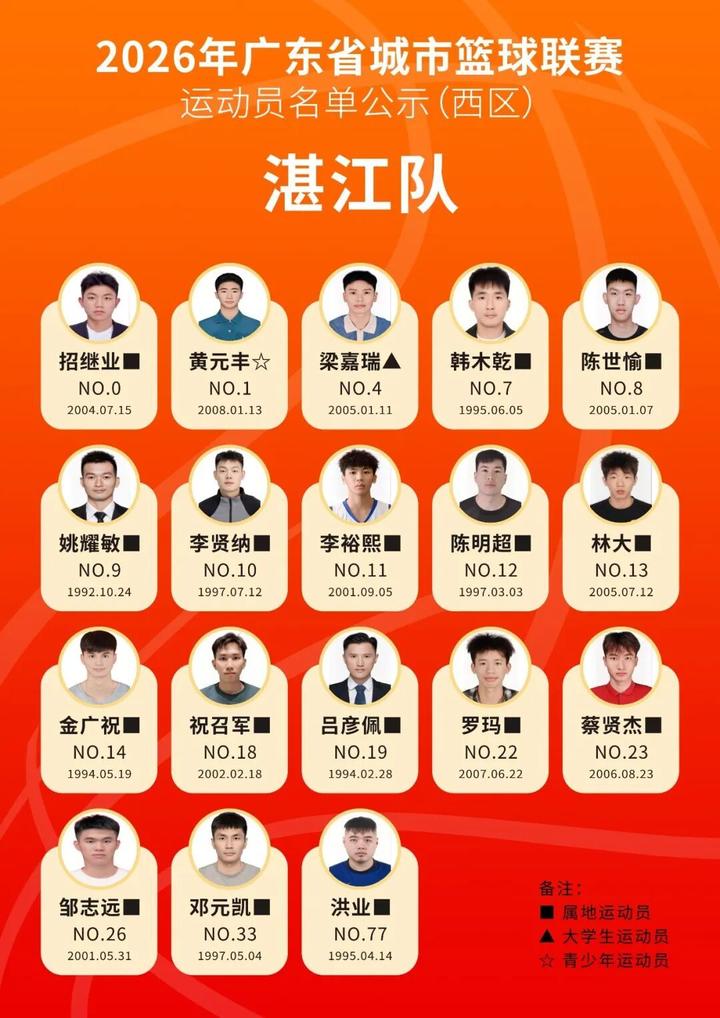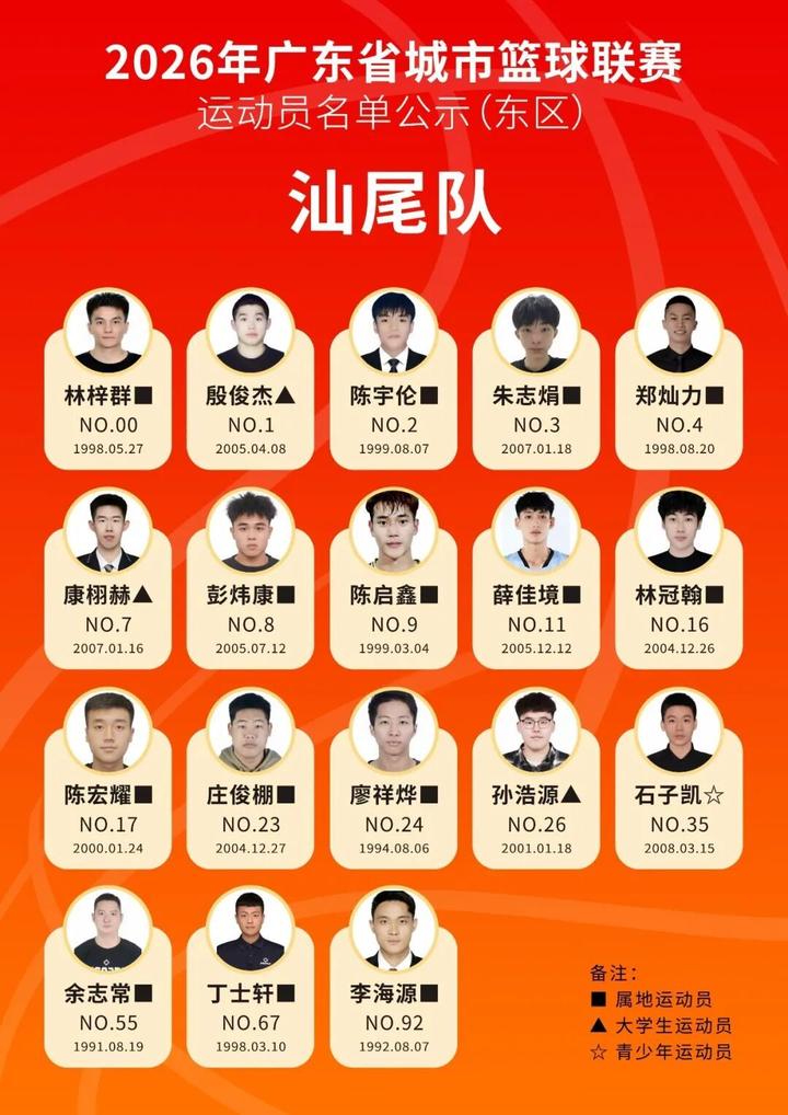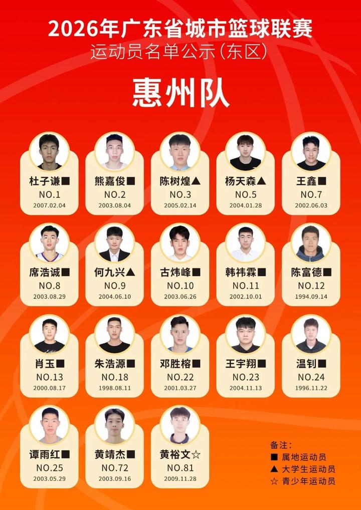 3月13日,广东省体育局官微对本次联赛参赛运动员名单进行公示,公示期为2026年3月12日至3月14日。惠州队运动员名单同步公示,一起为他们打CALL!