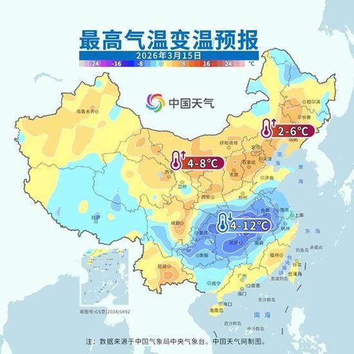气温方面,北方大部分地区将迎来升温,而南方降温核心区将转移到贵州东部、湖南西北部、湖北一带,多地降温超10℃。