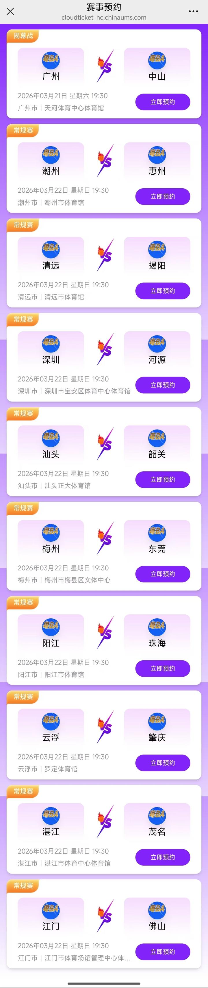 球迷可以登录“广东篮球—粤BA”公众号,挑选自己喜欢的场次进行预约。