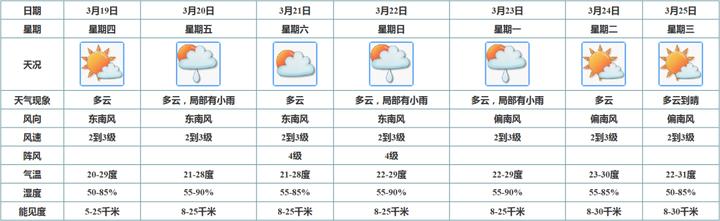 预计未来一周多云为主,间中局部有小雨,午间较热,早晚部分地区有轻雾或雾。森林火险预警信号正在生效,请注意用火用电安全管理。