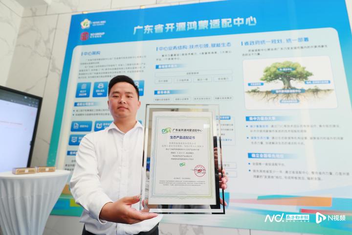 广东省开源鸿蒙适配中心首张生态产品适配认证证书。通讯员 李剑锋 摄
