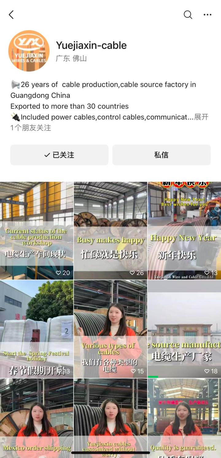 精准把握客户需求痛点,是粤佳信流量转化的核心秘诀。目前公司运维“禅诚电缆”“粤佳信”多个账号,发布中英双语视频,创作场景深入仓库、车间、项目现场,用真实画面解答客户在电缆采购中的选型、质量、安装等疑问,坚持每日更新一条内容。2025年,团队每月收获300多个有效询盘,凭借专业且真诚的内容打动了优质客户——一家中介贸易公司在对比十多家企业后,实地考察粤佳信的当天就敲定定制产品订单,足见线上内容建立的强大信任度。
