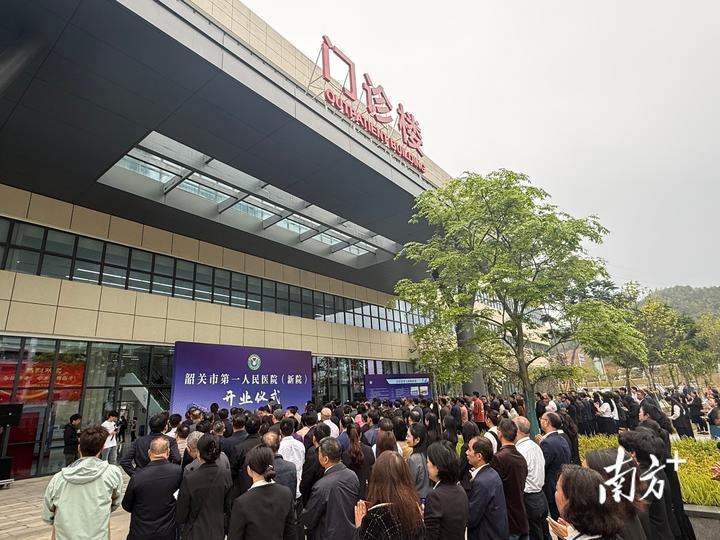 绿树与醒目的导引标识,映衬着宽敞明亮的空间,医护人员、志愿者和市民陆续在门诊大厅前聚集。随着启用仪式举行,这座位于武江区东景路1号的现代化医院正式全面投入运行。