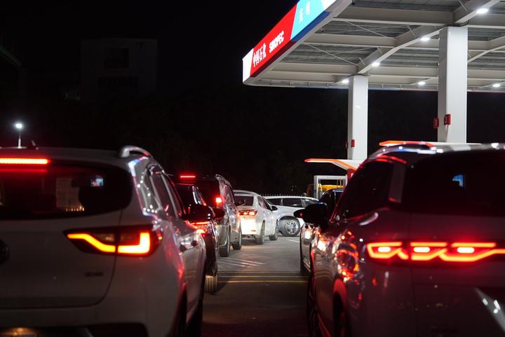 22日,南方+记者看到广州、中山多个加油站出现排队加油的场景。有车主表示,“排队需要差不多1小时,甚至有的油站都没油了。”