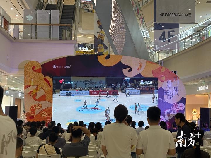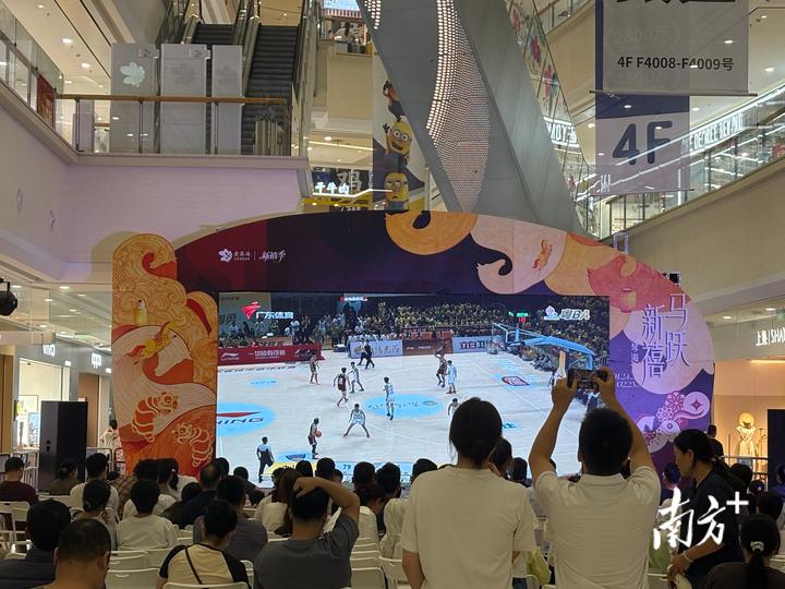 3月28日晚19:30,2026年广东省男子篮球联赛(粤BA)第二轮赛事正式打响,茂名队客场挑战东道主中山队。在茂名爱琴海购物公园一楼,赛事第二赛场同步开启,高清大屏全程转播赛事,吸引众多市民到场观赛,为茂名队加油助威。
