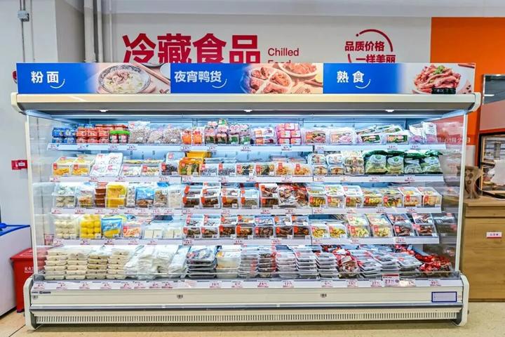 门店面积控制在600-800平方米,精选约1500款商品,涵盖生鲜、3R食品、标品、冻品等多个品类,一站式覆盖“开火做饭、即食即烹、休闲悦己、居家日用”四大消费场景,相当于将“升级版菜场+零食店+水果店+烘焙店”搬进社区,让居民在家门口就能实现日常消费的一站式满足。