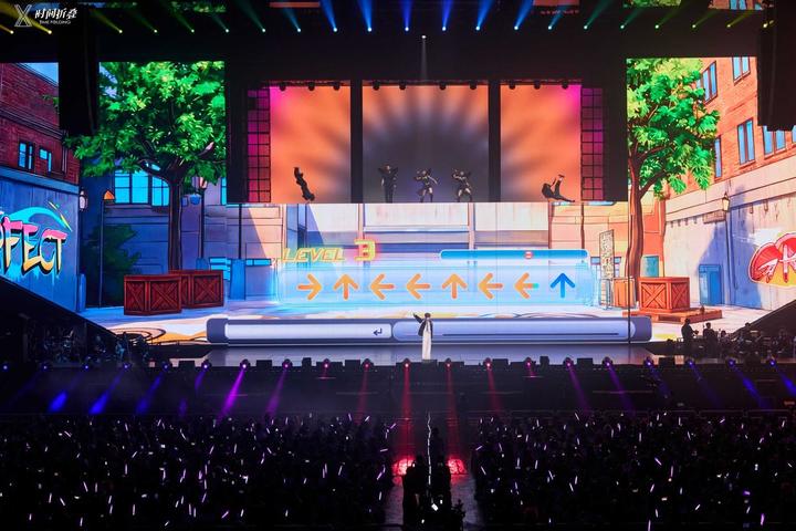 激光系统再创行业新高,全场搭载26台30W全彩激光、40台10W全彩激光、32台LaserBar、6台定制微吊心形矩阵激光,多品类组合呈现丰富光影效果,心形定制激光为巡演首次使用,浪漫与科技感兼具。现场更有定制小蝴蝶无人机亮相,以无线稳定控制呈现罕见空中视觉,为舞台增添灵动诗意。舞美以 “台前幕后相融” 为创意核心,让 LED 屏不仅是视觉载体,更成为空间叙事的一部分,传递 “以音乐陪伴、以创作坚守” 的温暖内核。