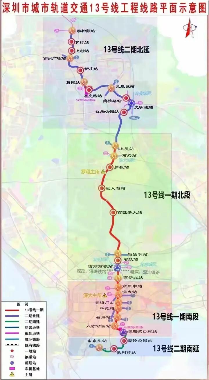 13号线是深圳中西部地区南北向骨干线路,包含一期和二期工程。
