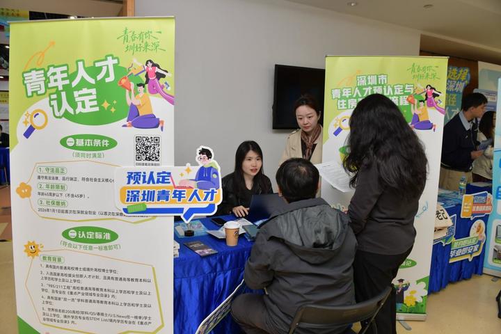 在招聘会现场,“才栖深圳”展区将人才服务前置,提供政策咨询和住房意向预登记等一站式服务。工作人员详细介绍“深圳市青年人才预认定”和过渡性住房等政策,让学子提前锁定“毕业即认定、落地即有家”的保障。