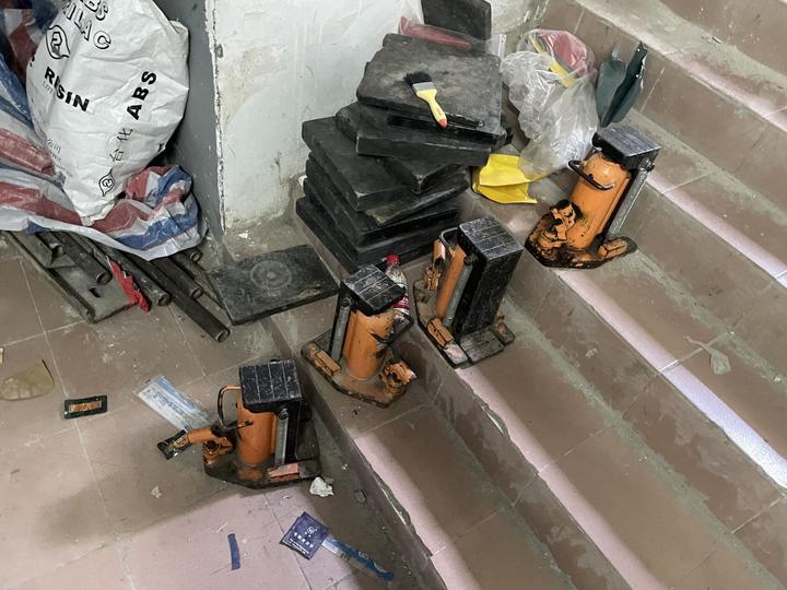 现场留有多个液压千斤顶