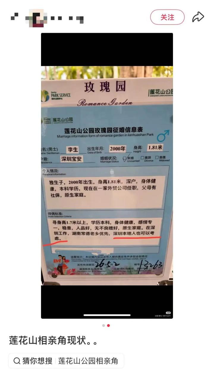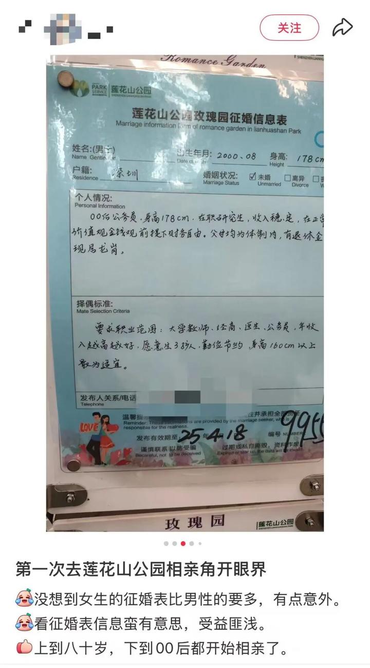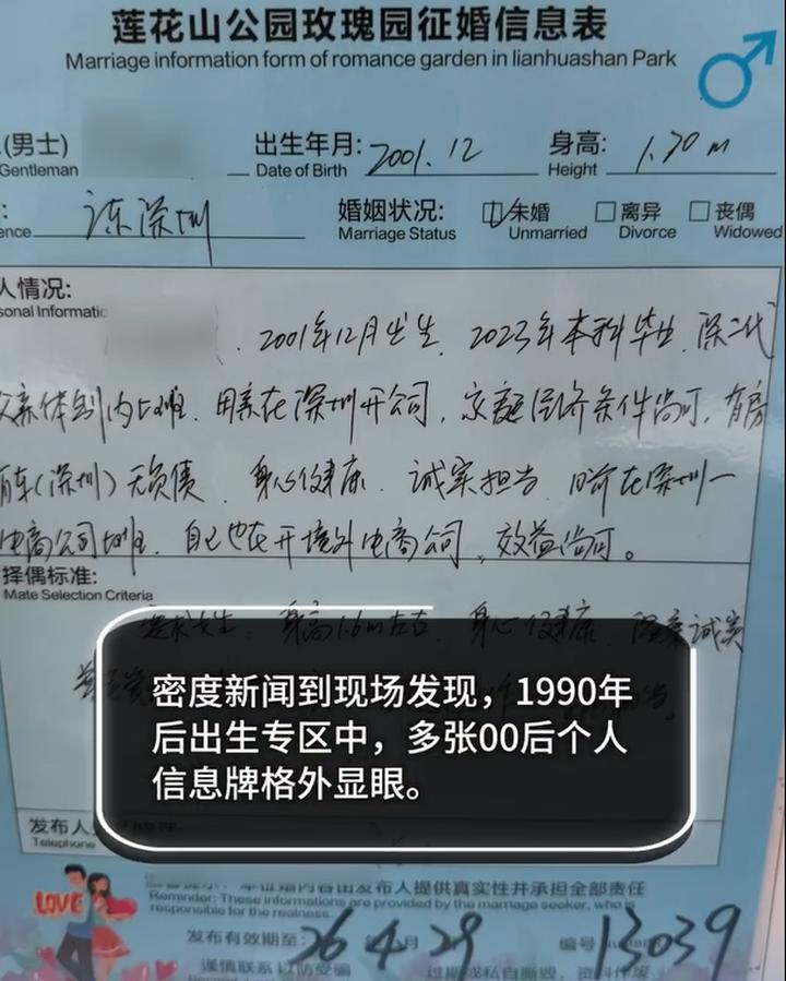 深圳新闻网记者致电莲花山公园了解到,目前确实有一部分00后前来登记挂牌,但该群体的人数暂未统计;同时,工作人员表示,相亲角交友挂牌没有限制,只要成年、自愿办理即可带着身份证去到公园登记参与。