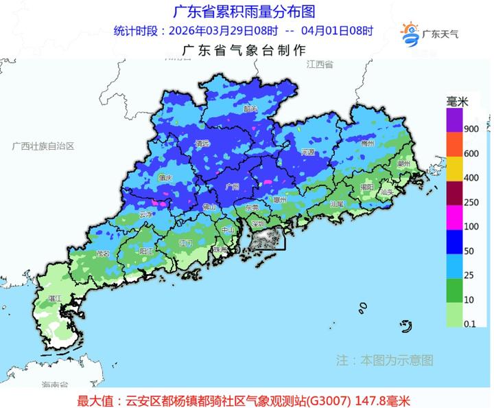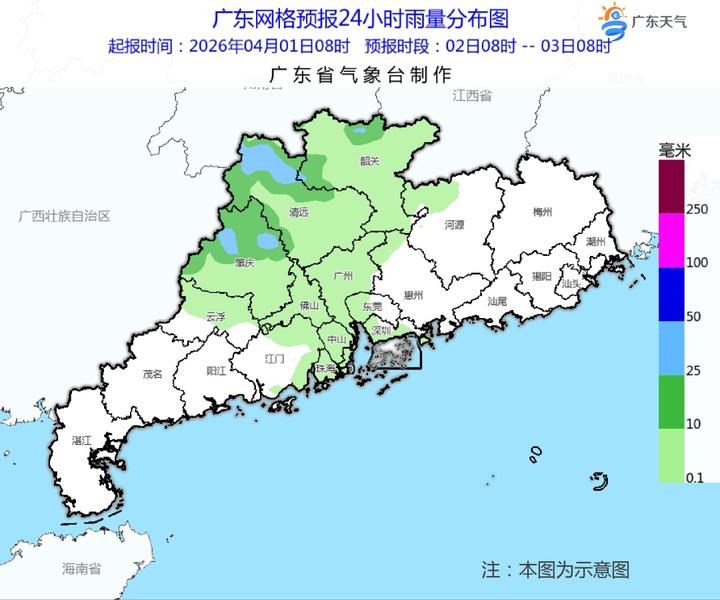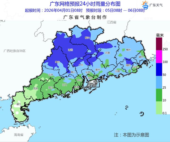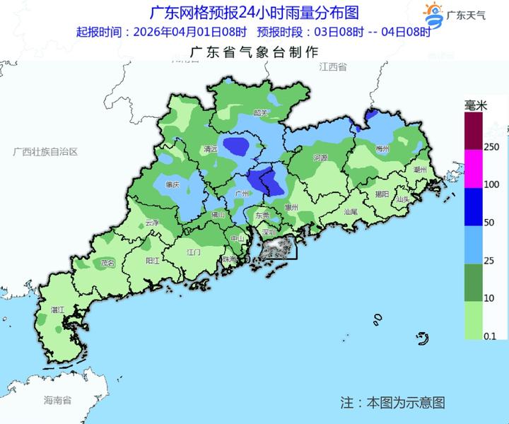 预计,2日夜间起到4日(清明假期首日),高空槽东移,低涡切变快速东移南压,配合弱冷空气南下影响,广东又将迎来一次明显降雨过程:中北部市县有大雨局部(大)暴雨,南部市县多云到阴天,有中雷雨,大部分市县雷雨时伴有8~10级(局地11级)短时大风、冰雹和短时强降水等强对流天气。其中,4日白天中北部市县降水逐渐减弱。