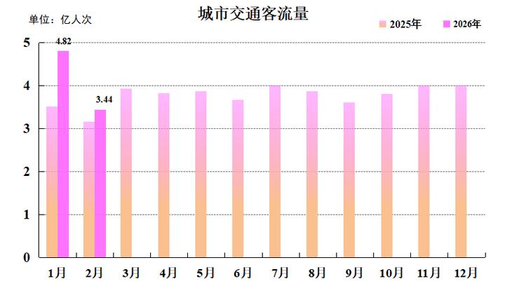 5自2026年1月起,城市交通客流量统计口径调整,新增网约车客运量统计。