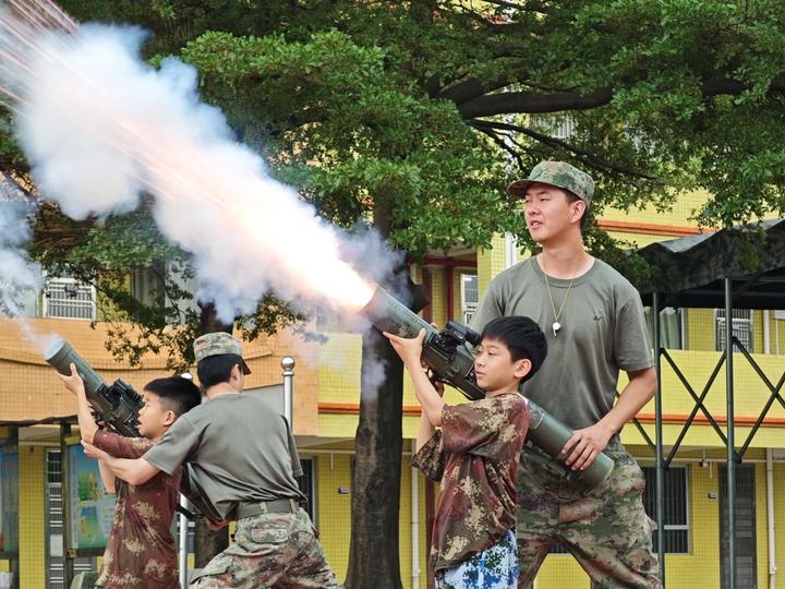 学生们体验国防特色项目。