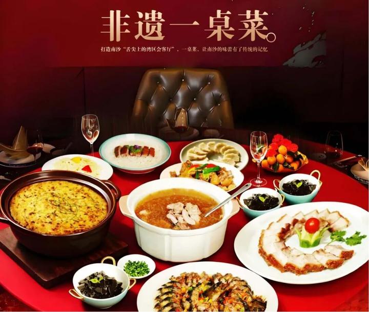 在南沙花园酒店,“云纱宴”将国家级非遗香云纱的三十道染整工艺转化为烹饪语言,每道菜品都是一段非遗故事的味觉讲述。南沙越秀喜来登酒店的“南沙宴”则精选黄阁烧肉、新垦莲藕、南沙青蟹等地理标志食材,结合疍家渔耕文化,实现“品美食、观非遗”的沉浸体验。