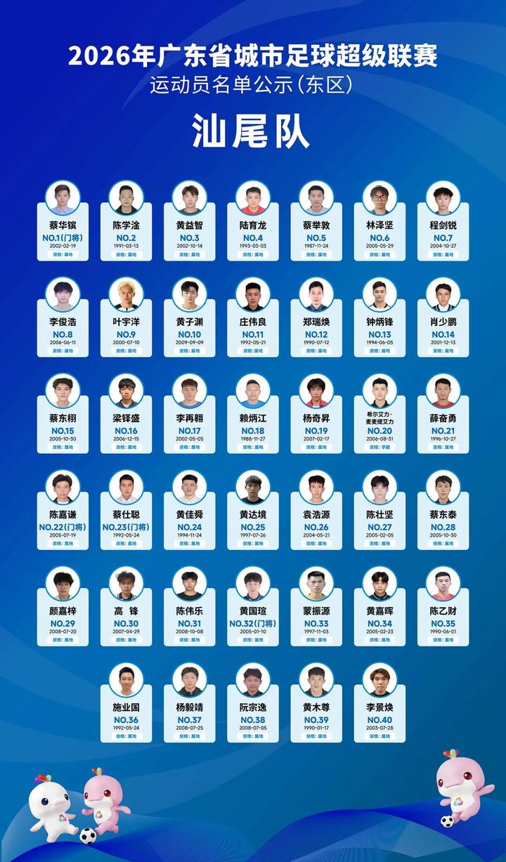 原标题:《参赛名单公布!这40人代表汕尾队出战粤超》