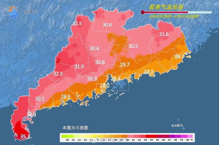 9日-10日,韶关及清远的北部市县多云间阴天,有分散(雷)阵雨,其余大部市县多云,局部有阵雨。白天最高气温:雷州半岛34~36℃,南部沿海市县27~29℃,其余市县30~33℃。
