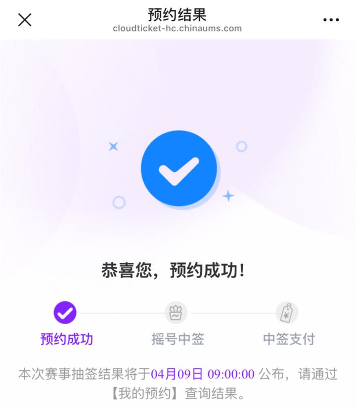 中签结果(“中签、候补中、未中签”三种状态)公布后,显示“中签”的小伙伴需在4月9日(星期四)19:00之前,进入“我的预约”模块完成票款支付,即可获得电子门票。显示“候补中”的小伙伴也要在4月9日(星期四)19:00之前完成付款,付款后获得候补资格,等待递补落座。