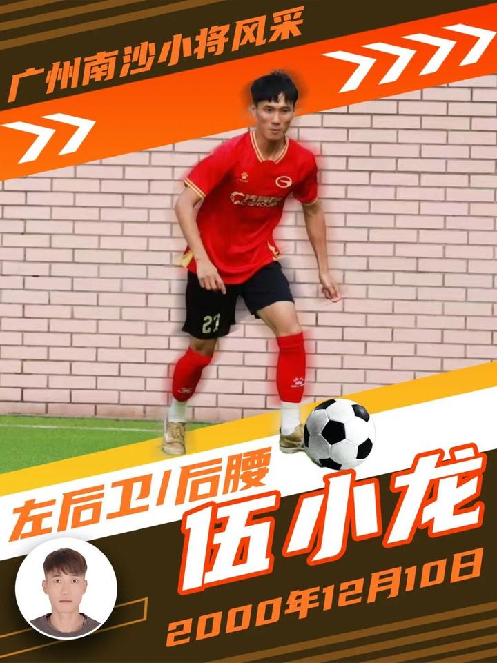 伍小龙同样效力于广州南沙中交四航图南。他上抢凶狠,补位意识强,团队意识良好,是后场多面手,能胜任中后卫和边后卫。曾代表梅县铁汉梯队、广州旅游商务职业学校、阳江摘星、兴宁锐志、佛山怡翠等队参赛。