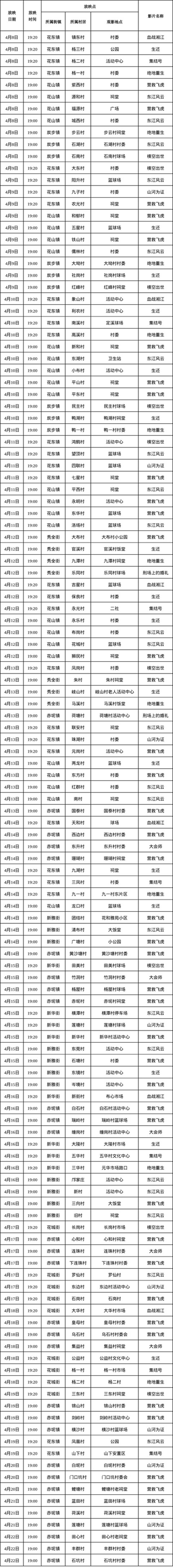 花都区“4·15”国家安全教育电影下乡放映计划表(部分)