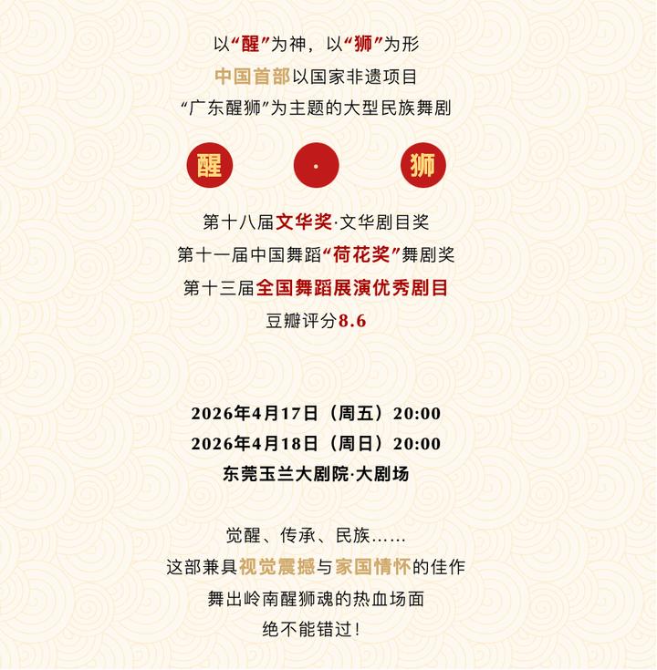 为回馈广大用户长期支持,南方+特别推出观演团专属活动,邀请大家走进东莞玉兰大剧院,共赏现象级精品舞剧《醒・狮》,近距离感受国家级非遗与岭南家国情怀的震撼碰撞。