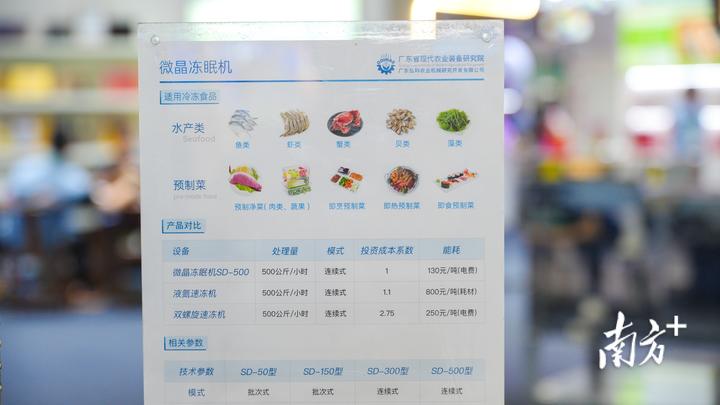 展会现场展示的SD-50批次式机型,每小时可处理50公斤荔枝,最大型号的机型每小时可处理1000公斤荔枝,多种型号可以满足基地、加工厂等不同规模需求。“运行成本仅为液氮速冻的1/5,节能优势突出。”赵锡和补充道,设备不仅适荔枝,还可用于黄皮、芒果等岭南佳果以及水产、肉类、预制菜等快速速冻锁鲜,一机多用提升利用率。