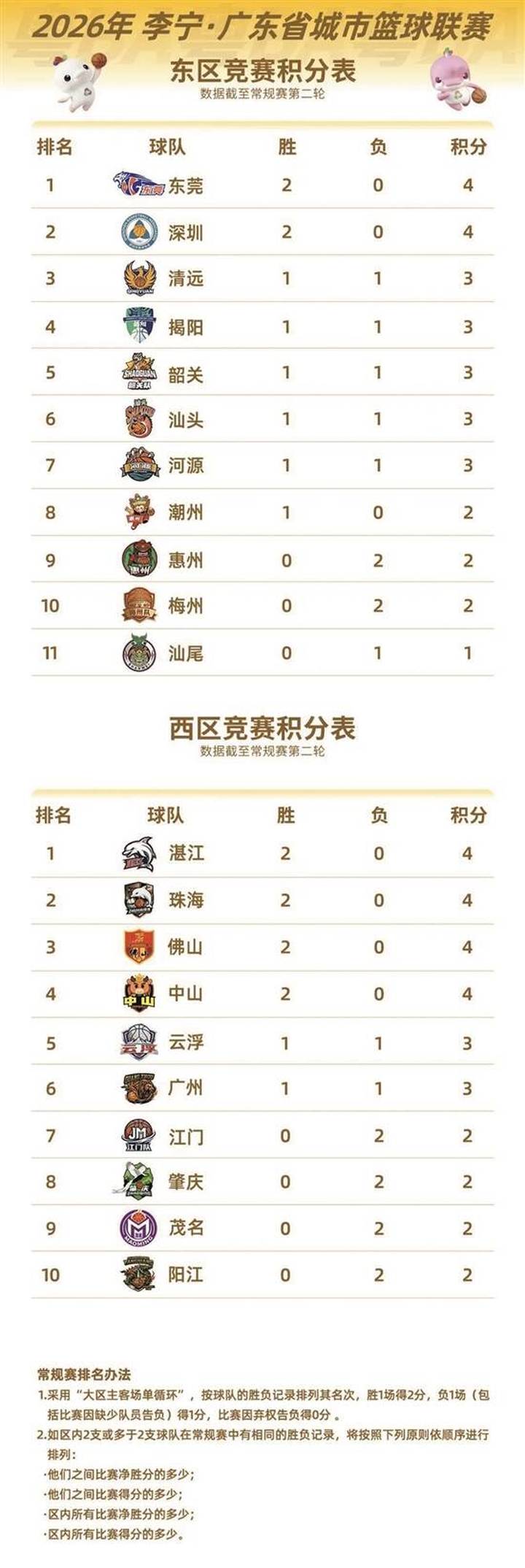 4月11日,经历了短暂的休赛期后,2026年广东省城市篮球联赛(粤BA)第三轮战火重燃。除了深圳和惠州的比赛将于12日晚进行外,本轮其余九场比赛都将在11日晚进行。目前在积分榜上,共有六支球队在前两轮取得全胜,分别是东区的东莞、深圳以及西区的湛江、珠海、佛山和中山。本届赛事的热门球队东莞队本轮轮空,这也意味着只要深圳队能在主场取胜,就能在本轮过后暂时登上东区榜首的宝座。