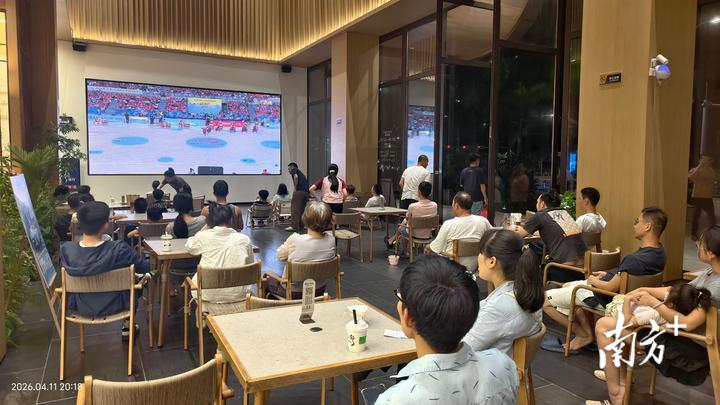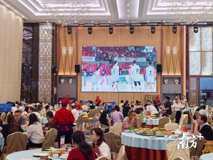 在茂名城区商圈、餐饮酒店里,市民围聚在大屏幕前,边欢聚闲聊边为茂名队呐喊助威。信宜市窦州里文化创意街区窦州大戏台下,没有空位,大家就站着看,热闹的观赛氛围让消费场所人气大涨。