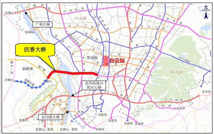 从区域发展角度看,沉香大桥作为白云与南海的区域联系通道,可以提升白云站的客流疏散能力。图片来源:《沉香大桥环境影响报告书(2024)》