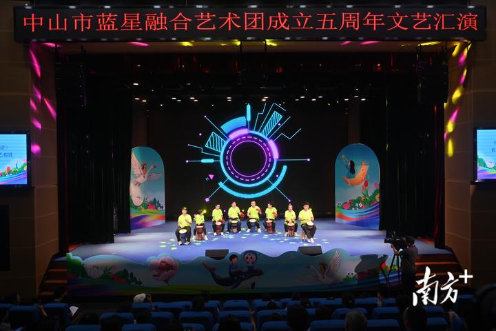 为让孤独症青少年享有学习艺术、走向艺术舞台的机会,增强其融入社会的能力,中山市青少年宫于2021年成立广东省首个孤独症青少年艺术团——中山市蓝星融合艺术团。艺术团构建“基础培养—专业提升—赛事通道”三级培育机制,涵盖非洲鼓、钢琴、书画陶艺等八大艺术门类,五年来累计开展公益课程超2200课时,服务孤独症青少年近13000人次,培养180名团员从零基础起步至能够登台演出,举办专场演出及美术展近20场次,为众多“星孩”铺就通往艺术与融合的道路。