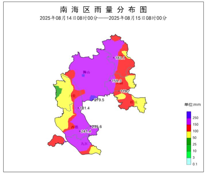台风“杨柳”影响期间雨量分布图。佛山市南海区气象局供图
