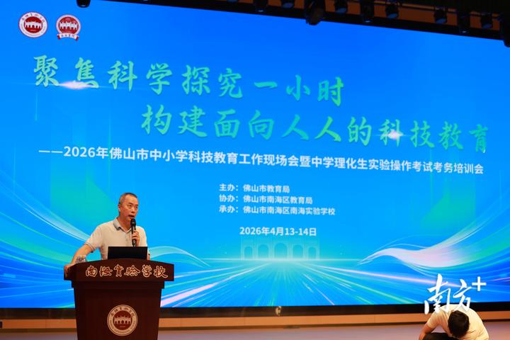 4月13日,2026年佛山市中小学科技教育工作现场会暨中学理化生实验操作考试考务培训会在南海实验学校顺利举行。这场活动不仅吸引了广东省教育装备中心、佛山市教育局及各区教育主管部门相关领导和北师大、广西师大、佛山大学等专家学者,全市高中、初级中学分管副校长等约200人线下参会,更汇聚了全国科学教育实验区第24协作组成员,以及佛山对口帮扶地区的科技教育负责人与全市中小学科技教育骨干教师3000多人线上观摩。