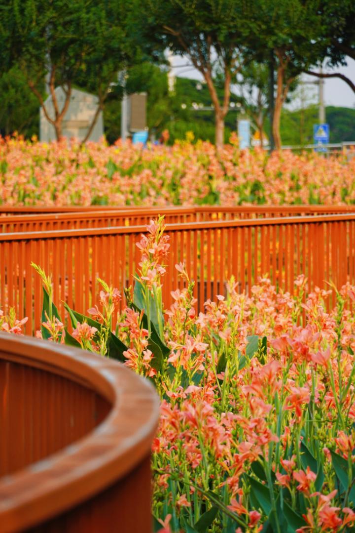 错位互动:靠近花海闻花,或用手指轻碰花簇,靠着护栏看花,故事感拿捏!
