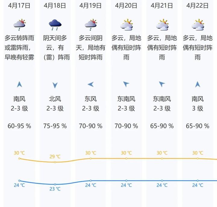 预计深圳17-18日多云到阴天,早晚有轻雾或雾,有(雷)阵雨,部分时间局地雨势较大,17日气温24-30℃。请大家外出时随身携带雨具,注意出行安全。