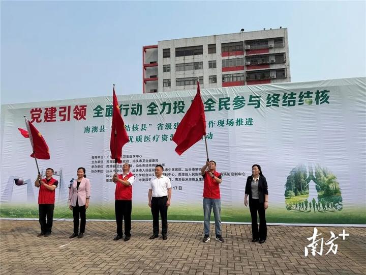 “同心抗痨、终结结核!”4月17日,在汕头市南澳县文化广场,群众代表一同发出“终结结核”的倡议,见证南澳县“无结核县”省级建设点志愿服务队授旗。当天,南澳县举办“无结核县”省级建设点工作现场推进暨优质医疗资源下沉活动,加快推进结核病防治工作。据了解,南澳正以“无结核县”省级建设点为抓手,探索一条“医防融合”的海岛防控新路径,全力织密结核病防治防线。