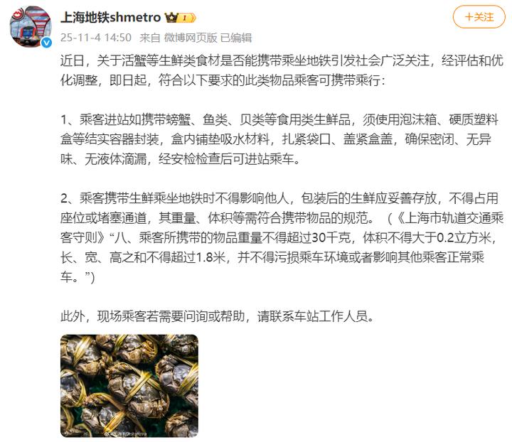 深圳地铁曾发布提醒,生鲜水产需“防异味、防渗漏”,且活禽活物不可携带。