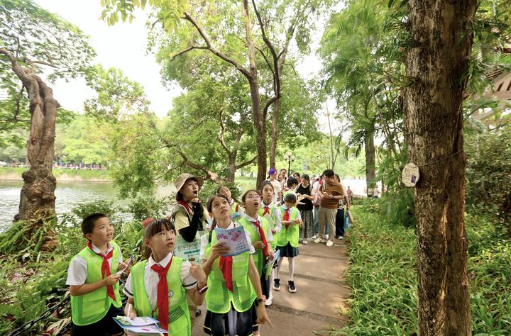 湖心岛化身“林长小队”自然研学实景课堂,以沉浸式自然观察为核心,设置“以兰结缘”破冰互动、“寻兰问道”户外导赏、“兰心绘语”自然创作、“兰缘回响”总结分享四大环节,层层递进、步步生花,巧妙搭建了从自然观察到思维碰撞的桥梁。