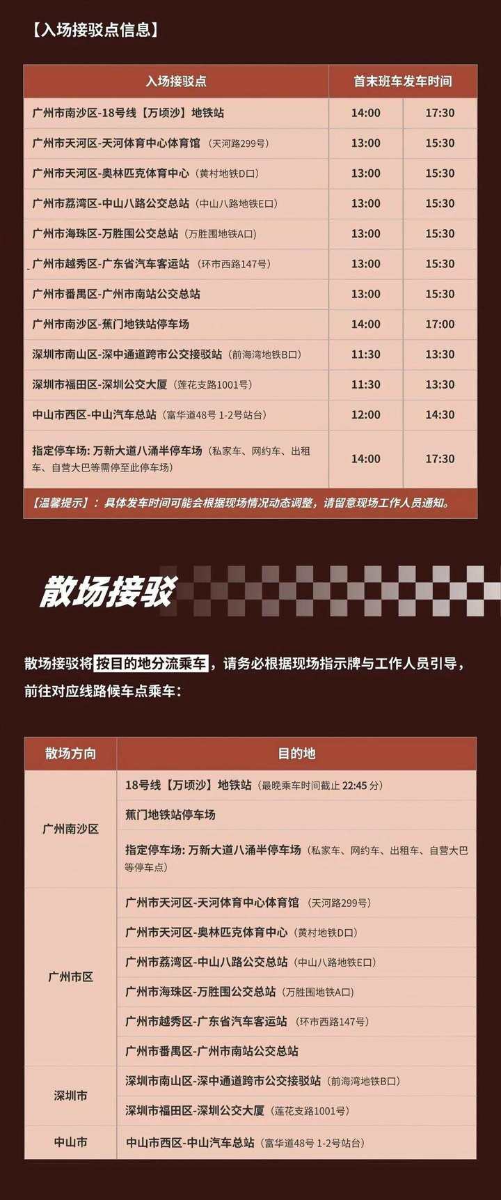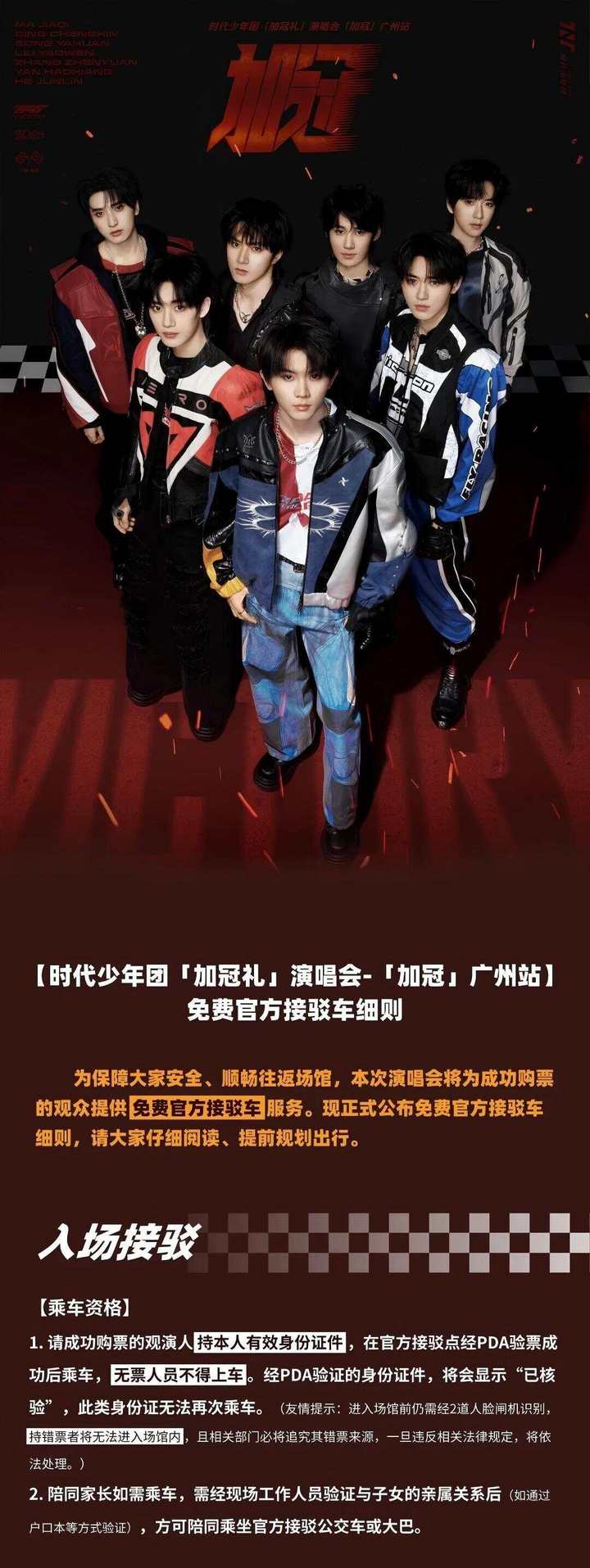 时代少年团“加冠礼”演唱会广州站将于5月1日、2日、4日及5日四天在位于广州南沙的大湾区文化体育中心举行。为保障大型演出活动安全有序进行,切实维护购票观众的合法权益,@TNT时代少年团-FanClub近日通过官方微博发布观演及交通提示,就实名制入场规则、交通管控措施及接驳安排作出详细说明。