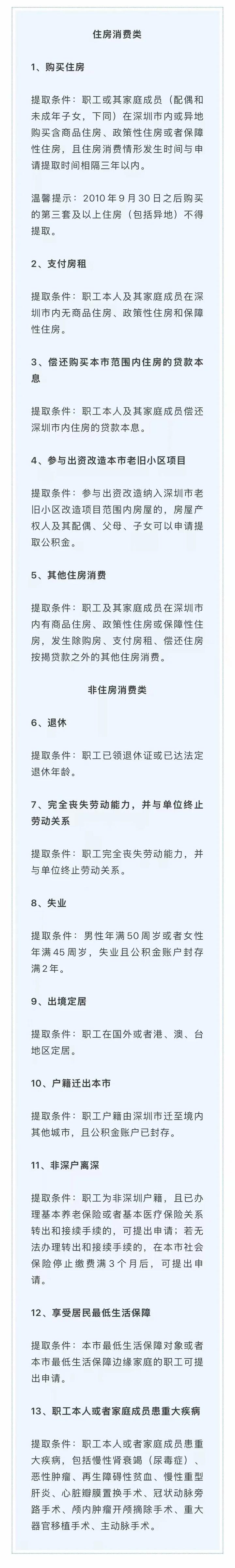 深圳市住房公积金管理中心工作人员回应深视新闻记者称,深圳从2011年发布实施《深圳市住房公积金提取管理暂行规定》起,就推出了覆盖住房消费全流程且人人可提的宽松提取政策,包括租房、购房、还贷、其他住房消费等住房消费类提取情形,以及退休、离深销户、大病等非住房消费类提取情形。其中,“其他住房消费”提取情形,支持职工提取月应缴存额的40%用于灵活支付本市住房的物业服务费、日常收取的物业专项维修资金等其他住房消费,并且用手机即可“零材料”在线提取。