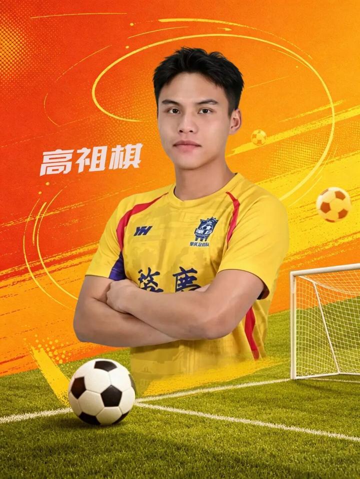 高祖棋,用汗水补短板的铁血后卫。场上司职后卫的高祖棋,和足球的缘分始于小学班会课上的一场班级球赛,班主任兼启蒙教练的引领,让他一头扎进了足球世界。五年级进入校队的第一年,他就随队拿下了肇庆市运会足球比赛冠军。高中以足球特长生身份进入广宁中学后,助力球队拿下肇庆市足球联赛高中组三连冠,曾入选全国足球夏令营高中组广东最佳阵容,拿下国家二级运动员证书。大学时期他以队长身份带领广州体育职业技术学院足球队拿下省长杯第六名,拿到了省大运会的入场券。
