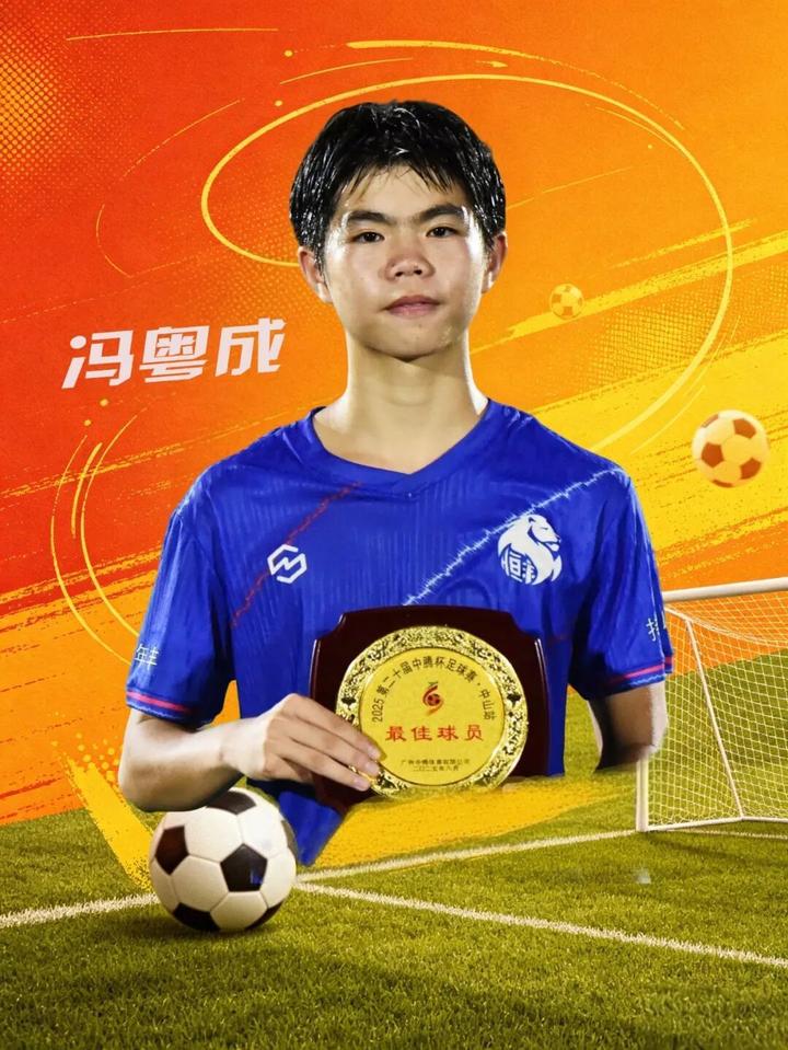 冯粤成,在挫折里成长的中场大将。司职中场的冯粤成,从小受父亲影响爱上足球,小学就进入校队,课余时间全泡在训练场,在一次次赛事里打磨出了出色的意识和技术。
