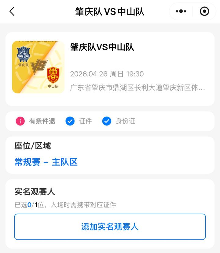 赛事实行一人一票实名制核验入场,1.2米及以下儿童在家长陪同下,凭有效身份证明可免费入场(不占座)。一个账号单场最多可为6名已实名登记的观赛人摇号抽签购票。