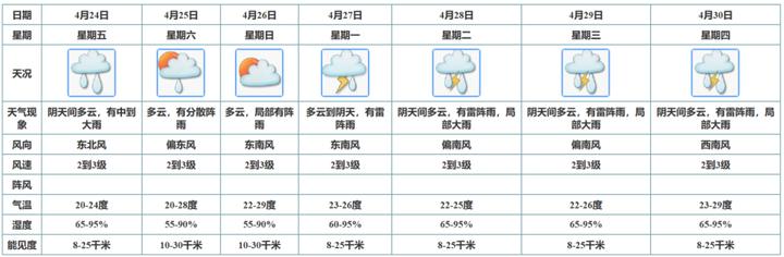 市气象台预计,江门未来一周雷雨活跃,24日有中到大雨,局部暴雨;25-26日有分散阵雨;27-30日雷雨频繁。目前处于强对流多发季节,注意防御雷暴、短时大风、短时强降水等突发强天气。