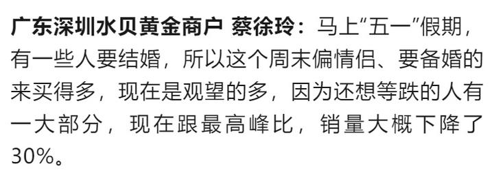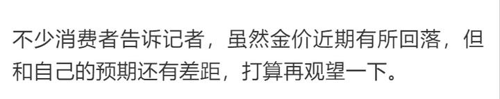 深圳市民:保值和佩戴两方面都侧重,也不会买附加值很高的首饰,现在这个价格观望一下,如果有很喜欢的就买一些,没有就算了。
